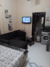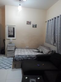 Furnished studio apartment available for monthly rent in Ajman, Corniche, third row from the Corniche, next to the Ship Roundabout. Price AED2700, including bills and internet. Free outdoor parking. The apartment is furnished and in good condition, with all equipment fully functional. Excellent location, close to all reliable services for Dubai and Sharjah stations and near a bus stop