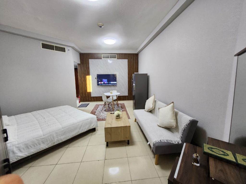 Studio for monthly rent The perfect opportunity for comfortable living Get everything you desire with us Comfort - Stability - Full services Location Ajman - Rashidiya 1 Orient Towers Close to all services, malls, and transportation Prime location with easy access Studio Features Equipped kitchen Bathroom Balcony Gym Swimming pool Central air conditioning monthly rent AED3500 Contact