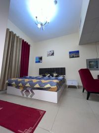 استوديو مفروش في أبراج الياسمين ببلكونه السعر 3800 درهم شامل جميع الفواتير مع باركينج التأمين 1000 درهم