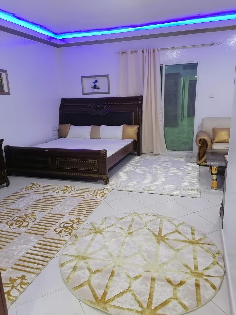 Large furnished studio apartment with balcony for rent in Ajman, King Faisal Street, opposite Istanbul. Features include a separate kitchen, central air conditioning, and all appliances. High - end, brand - new furnishings. Located in a family building, close to Safeer Mall and the Sharjah/ Dubai exit. rent is AED3500 inclusive, plus a AED500 security deposit. Available for booking on the 1st of the month