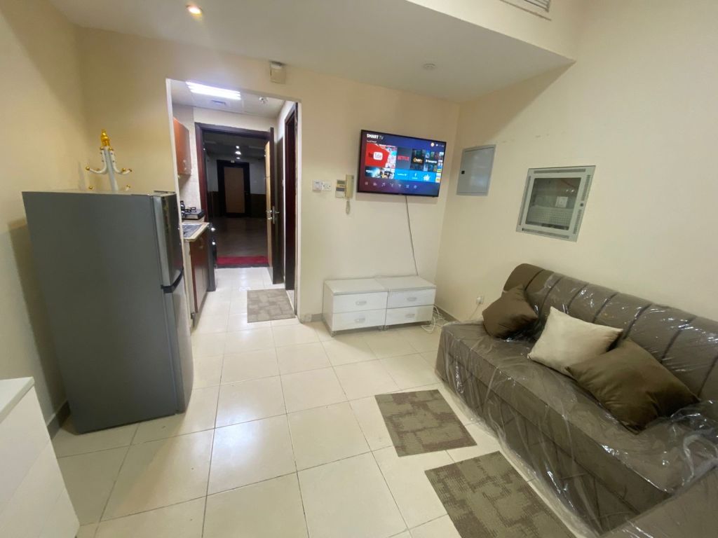 For rent in Ajman, Al Hamidiya Garden City, a furnished studio apartment with brand new furniture, first occupancy, all bills included. Price AED3400, security deposit AED500. Great view with balcony