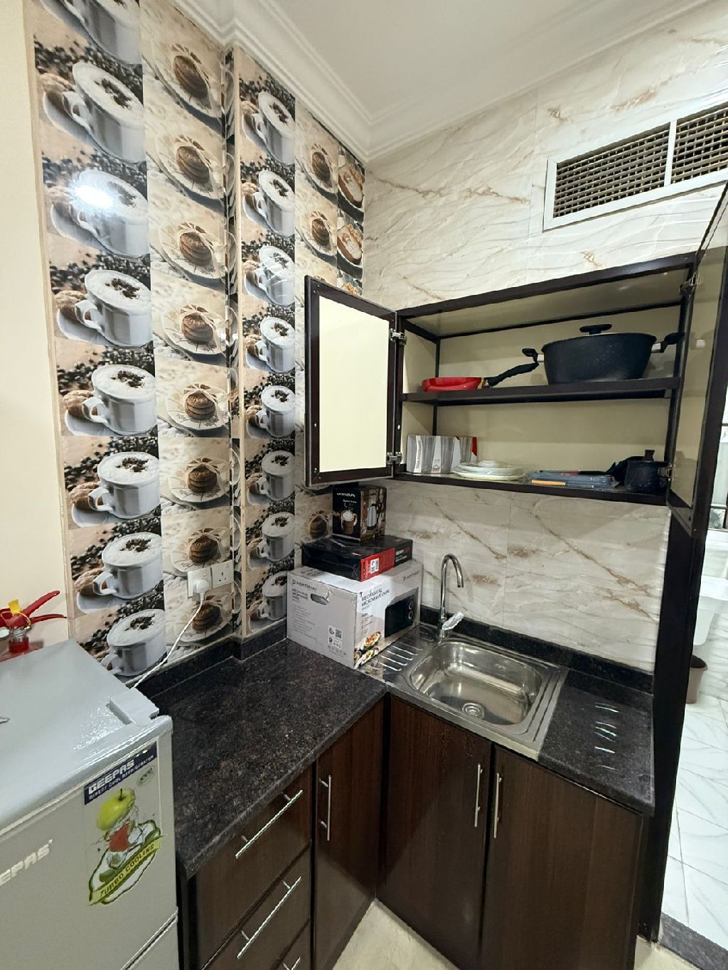 Furnished studio apartment for monthly rent in Ajman Directly on Sheikh Ammar Street All bills and internet included rent AED3000 Deposit AED500 (refundable upon departure)