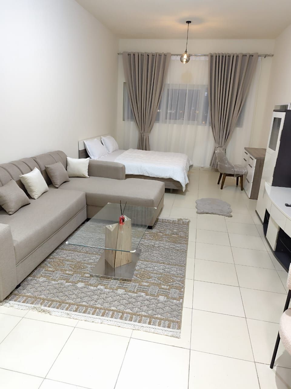 Studio for monthly rent The first resident of very high - end furnishings in Ajman Towers and a distinctive location close to services and facilities The studio is fully furnished New and clean furniture Luxurious finishing Comfortable space suitable for individuals or employees Includes all electrical appliances Ready for immediate housing monthly rent 4000 dirhams including maintenance Refundable