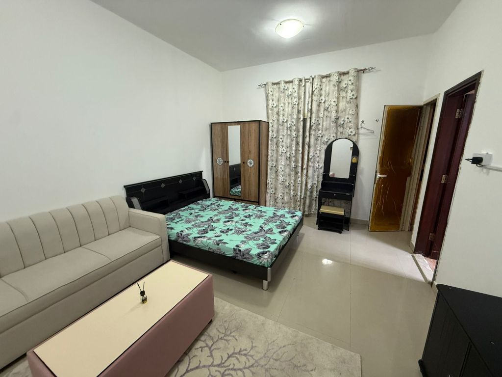 Furnished studio for rent in Al Naeemia 2, with separate kitchen and balcony, central AC. Price AED3200 per month including bills and internet. For contact (Call
