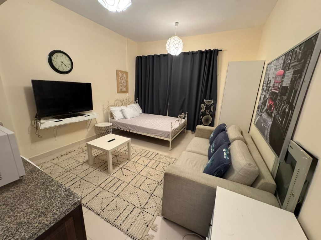 Studio apartment for monthly rent in Ajman, Al Hamidiya area, near Al Hamidiya Police Station and Kenz Hypermarket. The studio is furnished with high - end furniture, a separate kitchen, central air conditioning, and includes all electrical appliances. The price is AED3000 inclusive of all bills. A refundable security deposit of AED500 is required and will be available upon departure. The studio is