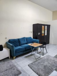 This extra - large studio inside a fully furnished villa, in front of The Villa's garden, has a kitchen and a separate bathroom. It is located in Al Hamidiya 1 behind Etisalat and Traffic next to Baby Smile Nursery. Price AED2700 inclusive of all bills, security of AED500 refunded. Available now, families only. Contact