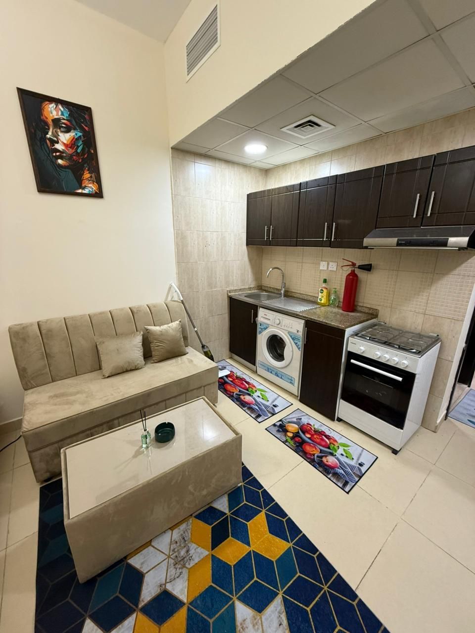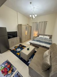 Furnished studio for monthly rent in Al Yasmin Towers in Ajman, the price is 3400, including all bills, and it has a parking + insurance 500