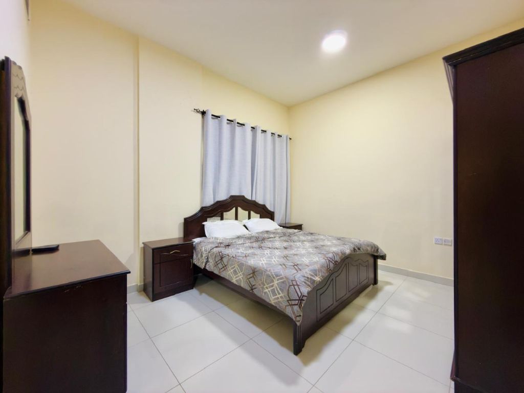 شقة غرفتين وصالة عجمان منطقة الروضة 1 خلف مركز شرطة الحميدية سهل المخرج جدا لدبي والشارقة شقة غرفتين وصالة فرش نظيف حمامين بلكونه - تكييف مركزي شامل كافة الفواتير مع الانترنت والصيانة