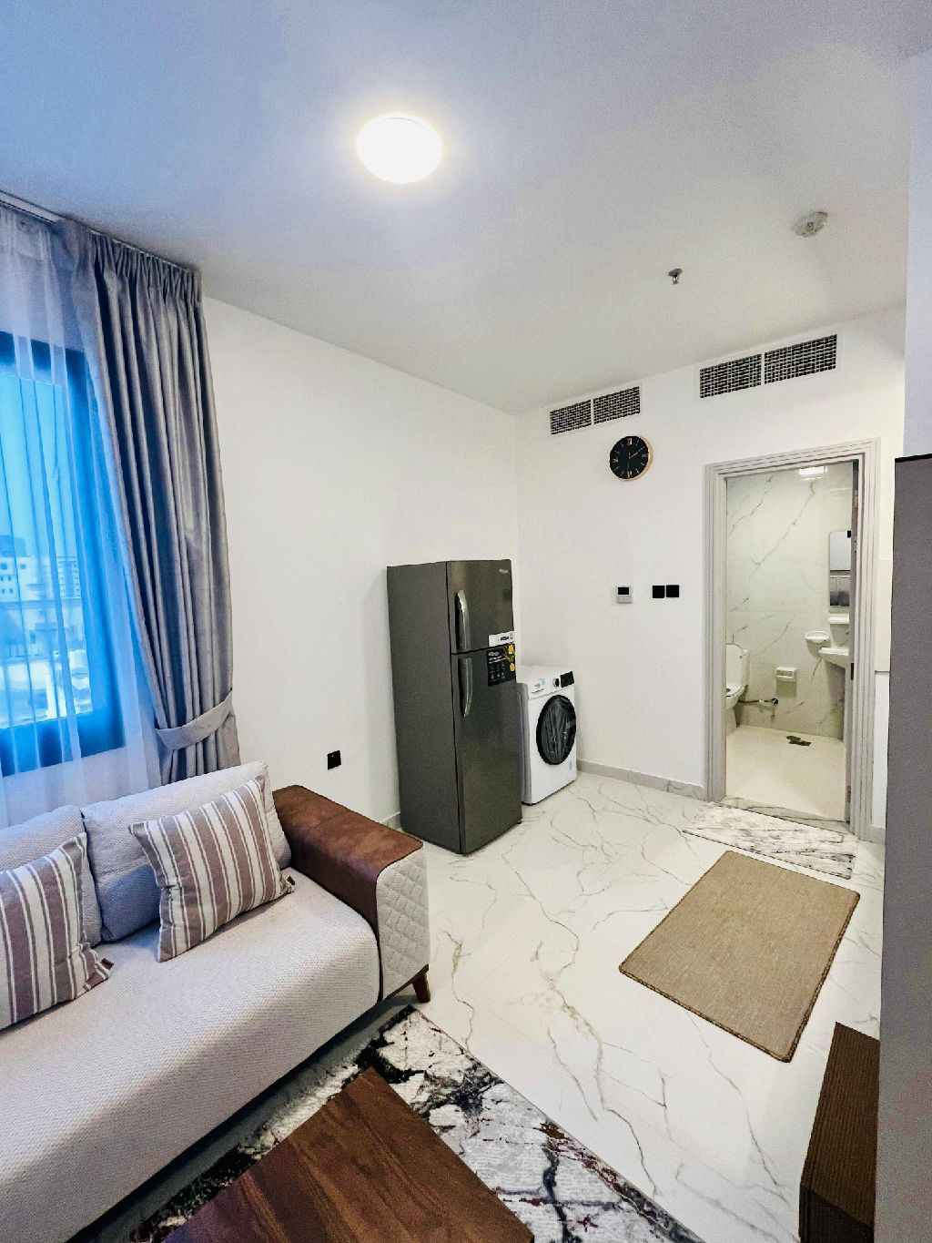 للإيجار الشهري بكورنيش عجمان استوديو أول ساكن مفروش فرش فندقي VIP السعر 3600 شامل الفواتير تأمين 700 مسترد