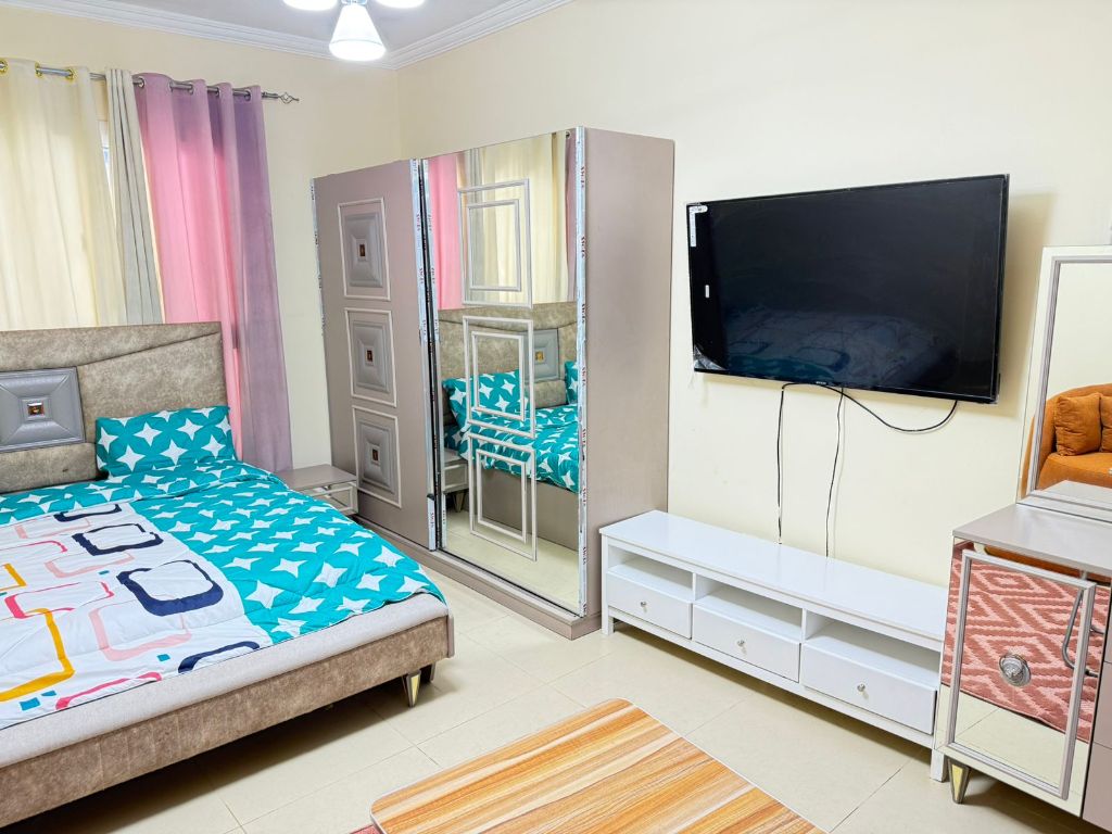 For rent in Ajman fully furnished VIP studio - First tenant Located in Al Yasmeen Towers monthly rent including utilities, internet, and parking Separate kitchen Price AED3800 per month, including bills and car parking