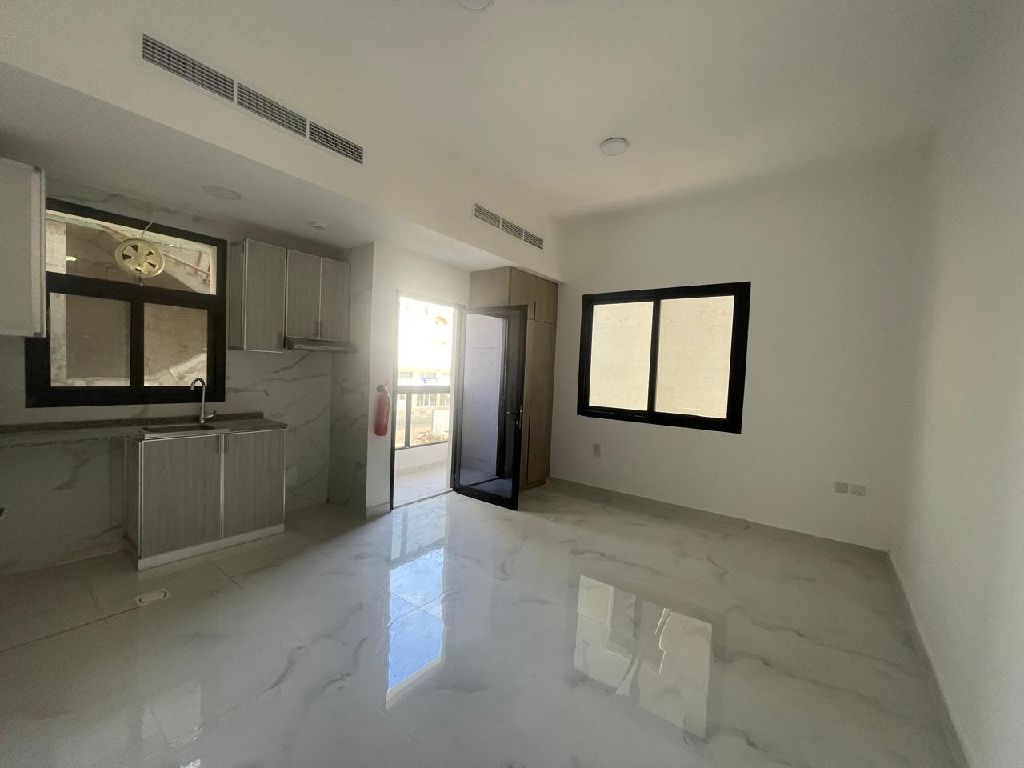 Studio apartment for annual rent, first occupancy, balcony, Al - Aliya area. Price AED22000, cash deposit, 4 or 6 installments