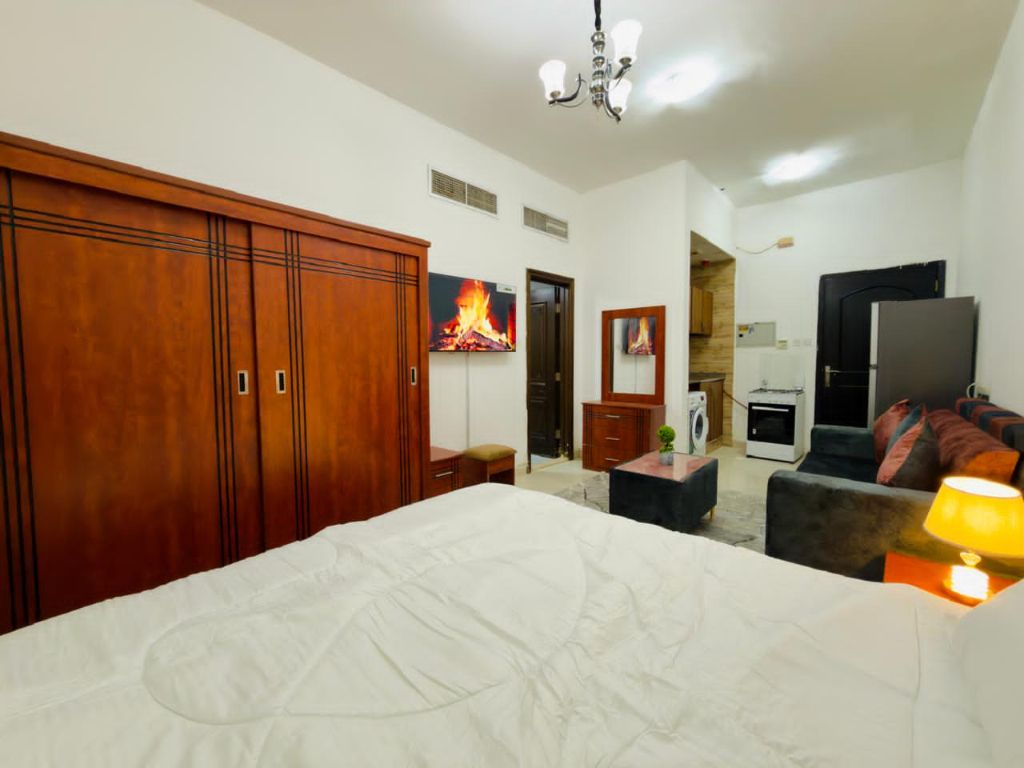 For rent Studio apartment in Al Rawda 2 - Ajman on Tunis Street, behind Al Rawda Bridge, near Abayat Signal. Easy exit to Dubai and Sharjah. Brand - new furniture, bathroom, central AC, and semi - separated kitchen. All bills included with internet and maintenance