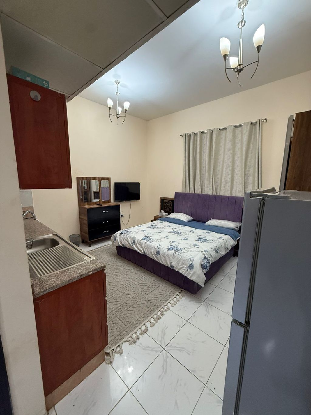 فرصتك تسكن براحة ومن غير وجع دماغ استوديو مفروش للإيجار الشهري في عجمان - الجرف 2 بجوار مدرسة الأقصى مساحة كبيرة وفرش نظيف شامل كل الفواتير + الانترنت سكن هادي وموقع ممتاز قريب من كل الخدمات للتواصل