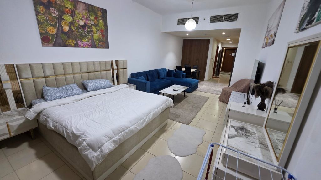 Furnished studio available for rent in Ajman One Towers Tower 6 in a prime location close to all services with easy access. Clean finishing and neat furniture suitable for comfortable living. monthly rent AED3700. Security deposit AED500