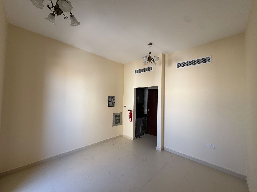 Studio apartment in Al Alia area, first occupancy, for annual rent. High - end and luxurious finishes. Prime location with a stunning view. Very close to public and commercial services and bus stations. easy access to Sharjah and Dubai. Features include a balcony, central air conditioning,600 SqFt, and free parking. Price AED25000, payable in 4 installments. Flexible payment options available