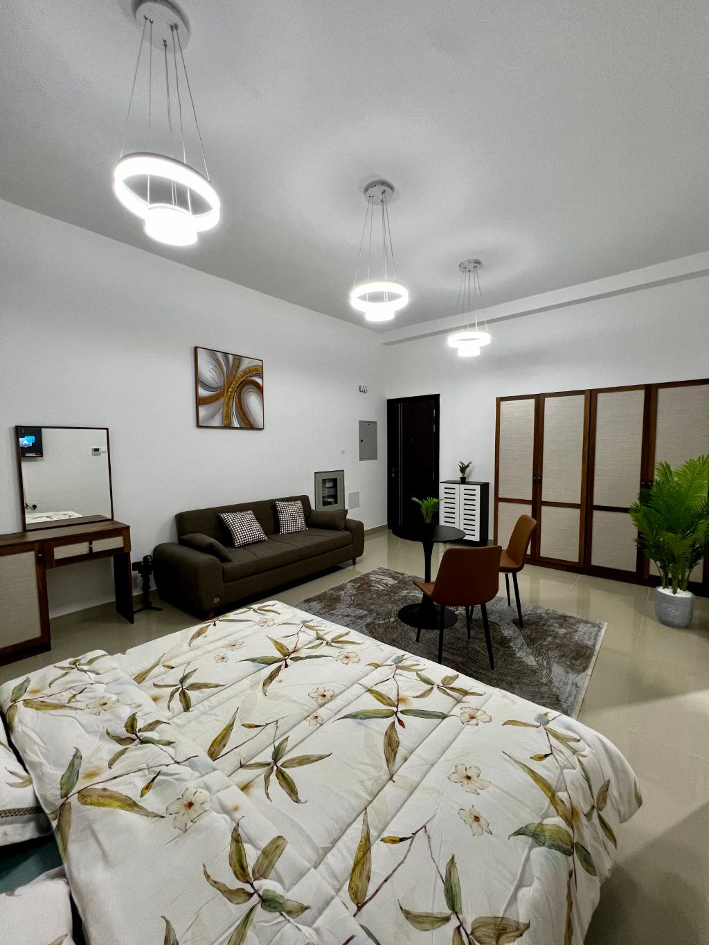 VIP furnished studio for monthly rent in Al Al Nuaimia 1 Ajman on Kuwait Street. Spacious studio with a separate kitchen and modern furniture. Located in a new family building close to all services. monthly rent AED3500 including electricity, water and internet. Security deposit AED700