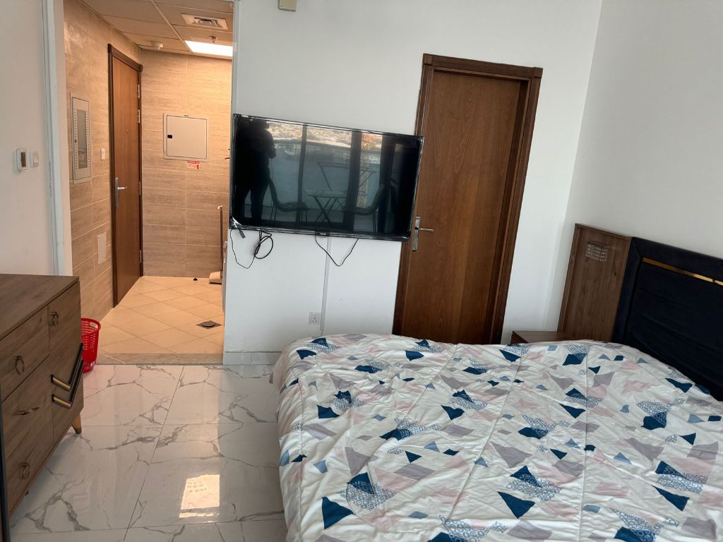 Furnished studio apartment for annual rent in Al Waha Towers, Ajman with balcony and sea view. The building offers great facilities including gym, swimming pool and free parking. The studio is fully furnished and ready to move in with good space, natural light and ventilation. Located close to supermarkets, restaurants and daily services. Annual rent AED32000. Suitable for individuals