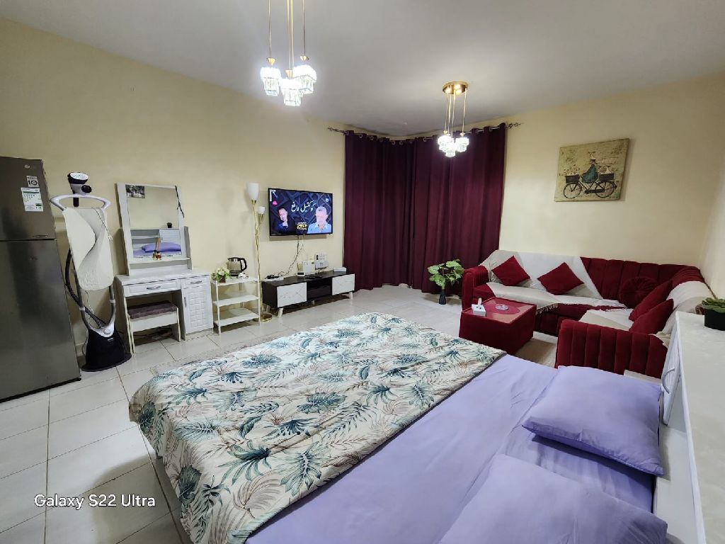 Furnished studio apartment for monthly rent in Ajman Directly on Ajman Corniche with a full sea view Near all services, restaurants, cafes, and the bus station rent includes all bills, internet, and parking Insurance refundable upon checkout