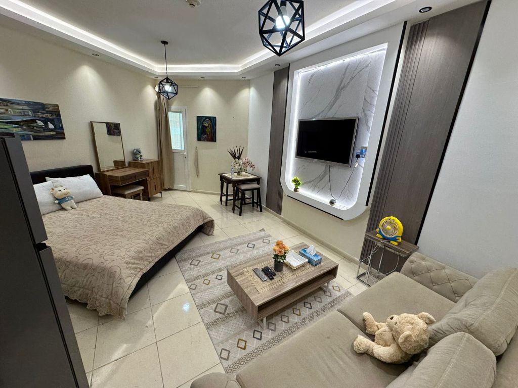 For monthly rent a fully furnished studio first occupancy in Orient Towers with a large layout and balcony overlooking the shared facilities includes a swimming pool gym parking and a children'play area in a quiet and secure complex rent AED3500 including all bills the studio is available from the 21st suitable for individuals or employees looking for comfortable living contact now to reserve the