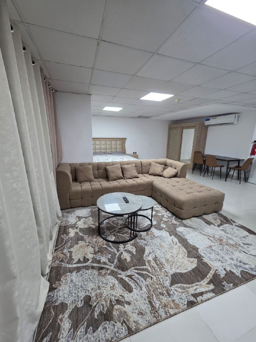 بدون عمولة استوديو مفروش للإيجار الشهري في إمارة عجمان منطقة المويهات 2 قريبة لمخرج الشارقة ودبي فرش جديد مساحة كبيرة جدا متوفر باركينج أسفل البناية شامل جميع الفواتير والانترنت