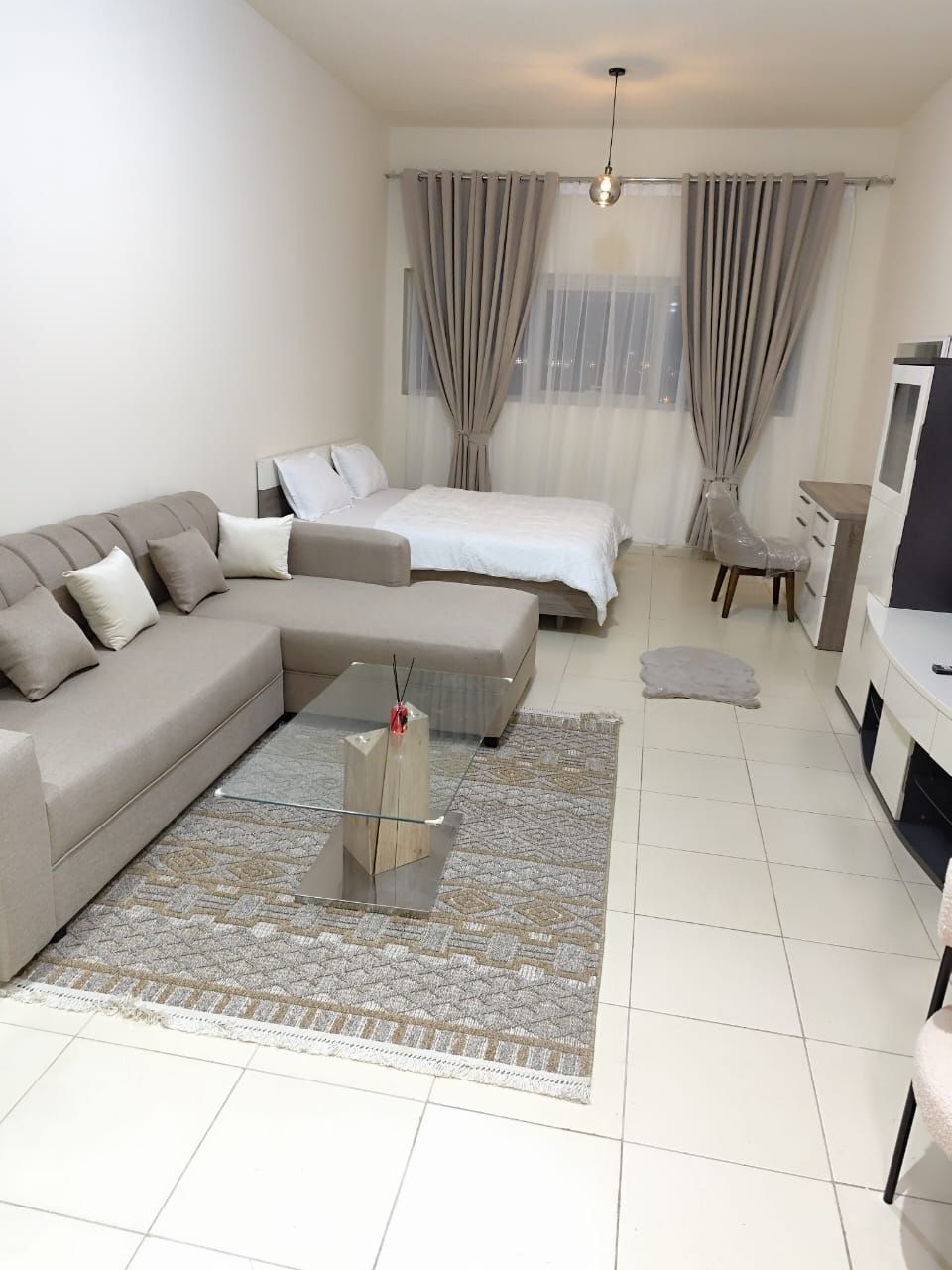 Furnished studio apartment for monthly rent in Ajman, One Tower, Rashidiya 3. First occupancy. All bills included. rent AED4000. Deposit AED1000 (refundable upon departure) Available now