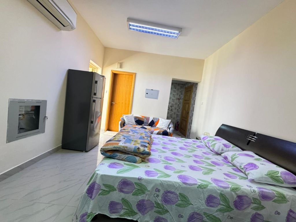 VIP furnished studio for monthly rent on Ajman Corniche, with balcony and separate kitchen, prime location near the sea and all services, including all bills and internet, ready to move in rent AED3400 monthly Security Deposit AED500 Contact