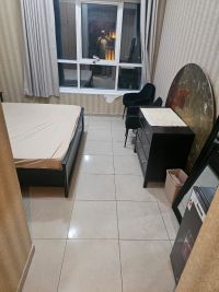 غرفة ماستر بحمام داخلي خاص وثلاجة بكورنيش عجمان النخيل 2 صف أول من الكورنيش اطلالة بحرية مباشرة سكن ميكس لزوجين أو بنت أو بنتين أو شاب أو شابين السعر 2300 درهم