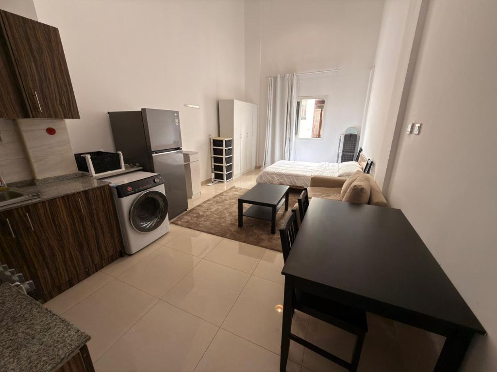 Furnished studio apartment, first occupancy, for monthly rent. Ground floor, also available for annual rent in Al Al Mwaihat 3, Ajman. Excellent location with convenient services. Directly on the Dubai exit. Brand new furnishings. Includes all appliances and electrical equipment. AED2700 inclusive of all bills (excluding internet) Security deposit AED500