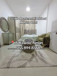 Furnished studio apartment for monthly rent in Ajman, Al Rawda, Sheikh Ammar Street, direct exit to Dubai and Sharjah, near all services, restaurants, cafes, and bus station. Includes all bills, internet, and parking. Spacious dirt road. rent AED2800. Security deposit AED500, refundable upon checkout