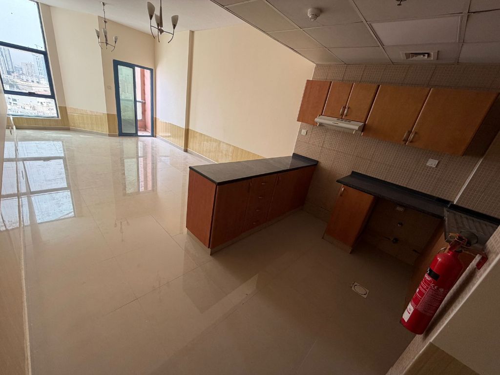 Best studio apartments for annual rent in Ajman - Al Al Nuaimia 1 Tower C a prime location next to Al Hikma School and close to all services and transport. The studio offers a large space with a practical layout and a separate American - style kitchen for better comfort and privacy. It features a balcony with an excellent view of Sheikh Khalifa Bin Zayed Street, central air conditioning for efficient