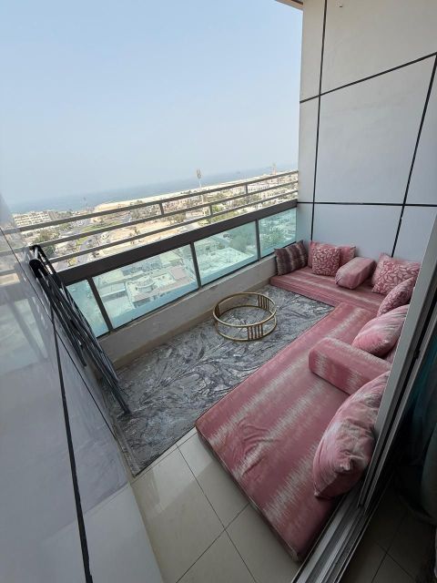 3BHK apartment with sea view and balcony between Sharjah and Ajman. Prime location near Dubai and Sharjah exits. fully furnished with luxury hotel - style furniture, 4 bathrooms, maid’s room, cinema room, office, and fully equipped kitchen. All bills, internet, and 2 parking included. rent AED8500/ month - Deposit AED1500 Ikramy Mostafa