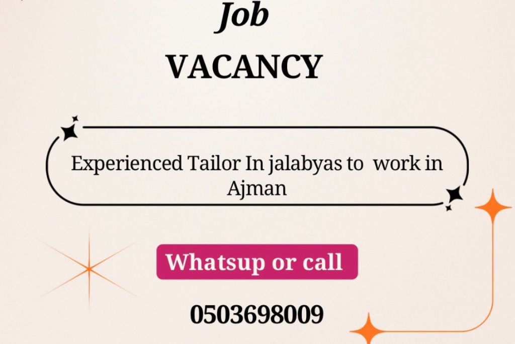 Job Vacancy Experienced Tailor in jalabyas to work in Ajman WhatsApp or call