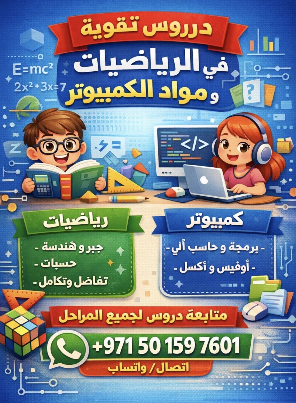 مدرس رياضيات Math جميع المراحل التعليميه وتأسيس مادة الرياضيات والكمبيوتر للطلبه والمبتدئين