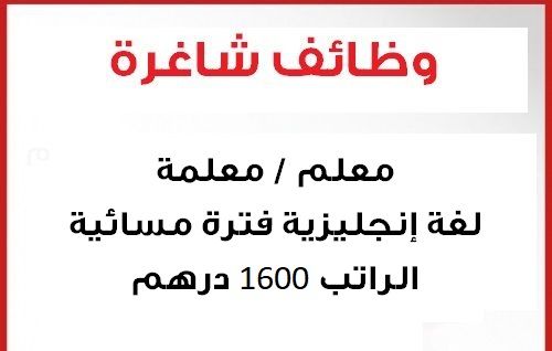 مطلوب لمعهد تعليمي في عجمان معلم / معلمة لغة انجليزية خبرة بالمستويات والأيلتس فترة مسائية، الراتب 1600 درهم، إقامة داخل دولة الامارات، ترسل السيرة الذاتية مع صورة شخصية على البريد الألكتروني عجمان النعيمية 1 / البريد الألكتروني