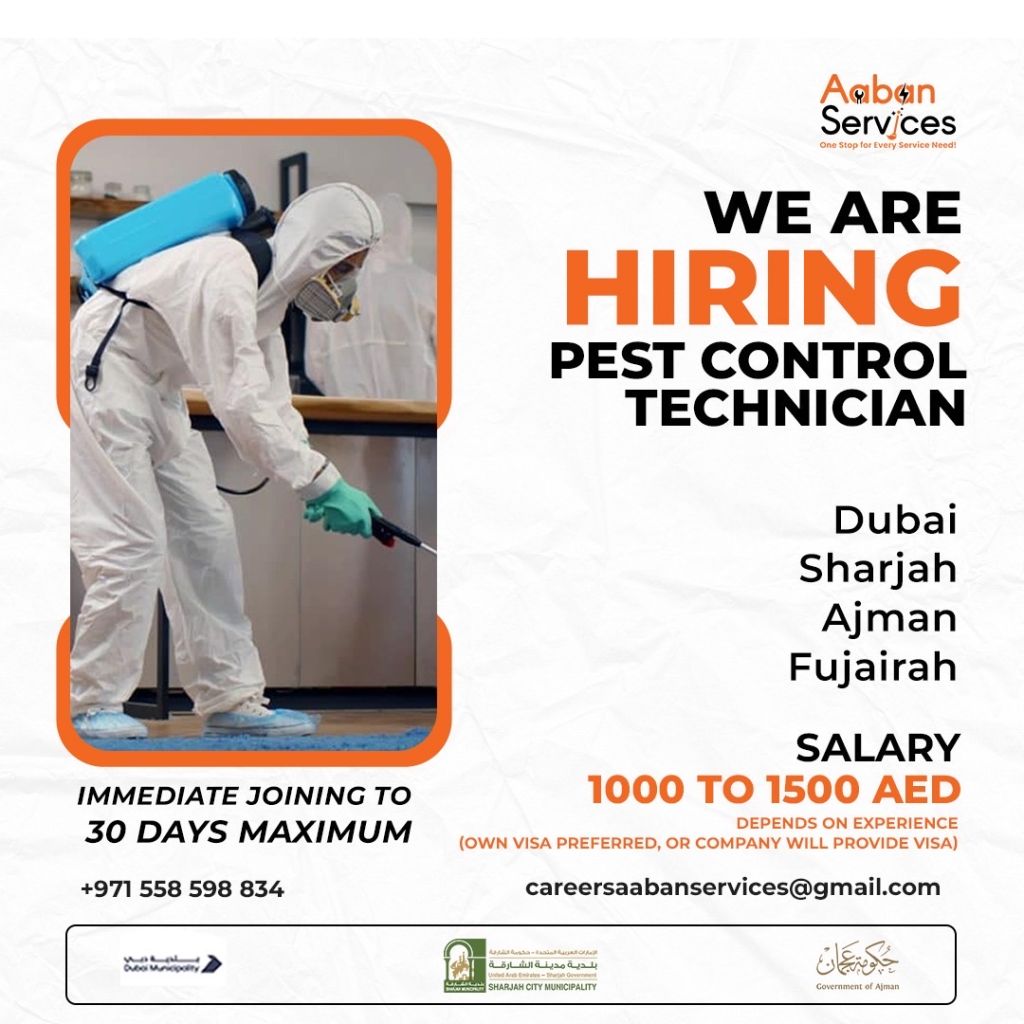 Need pest control technician salary 1200 to 1500 with Accomandation in Ajman Nuimiya 1