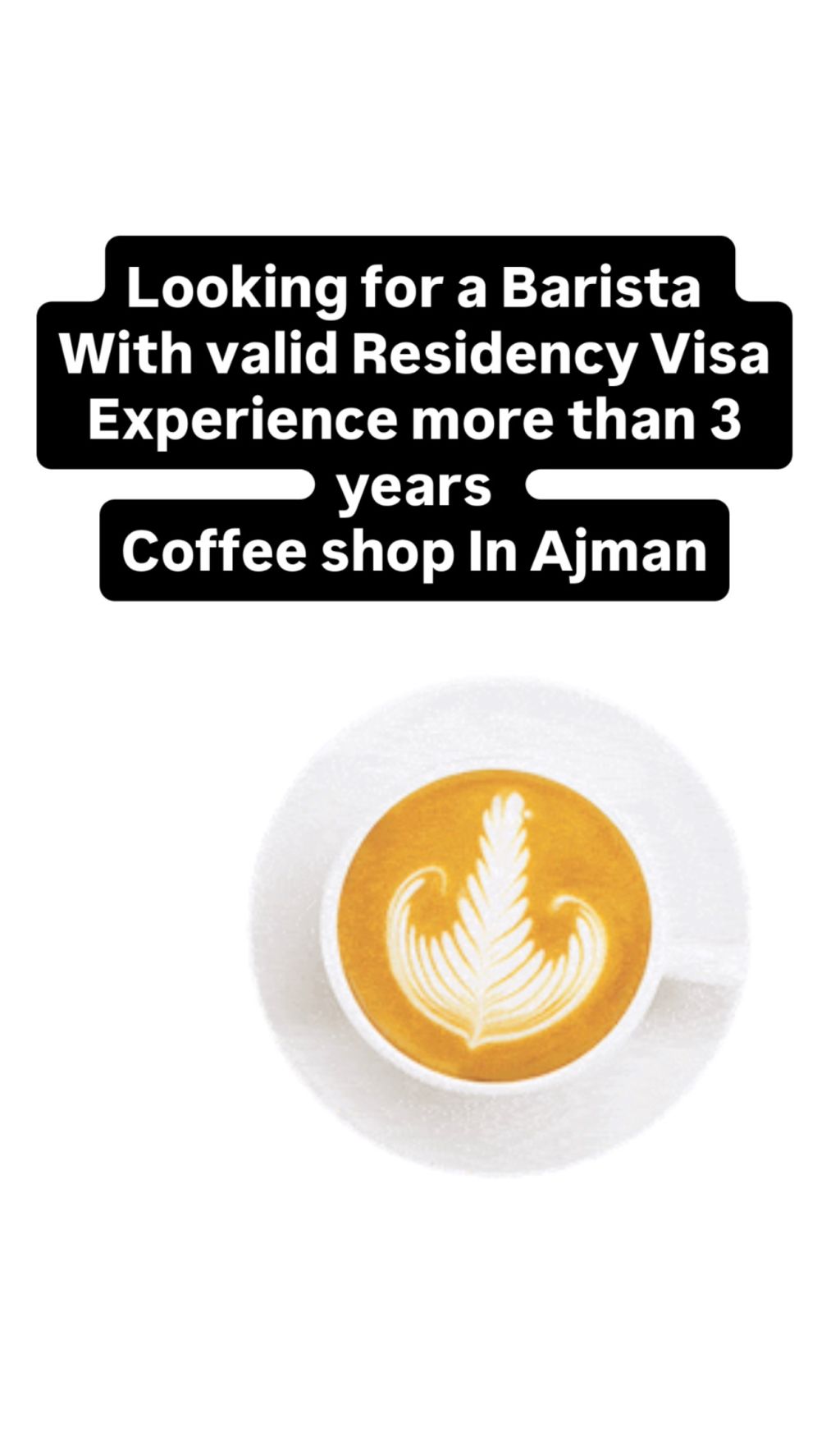 We are looking for barista with 3 years experience and has a valid visa, coffee shop in Ajman/ Al Jerf