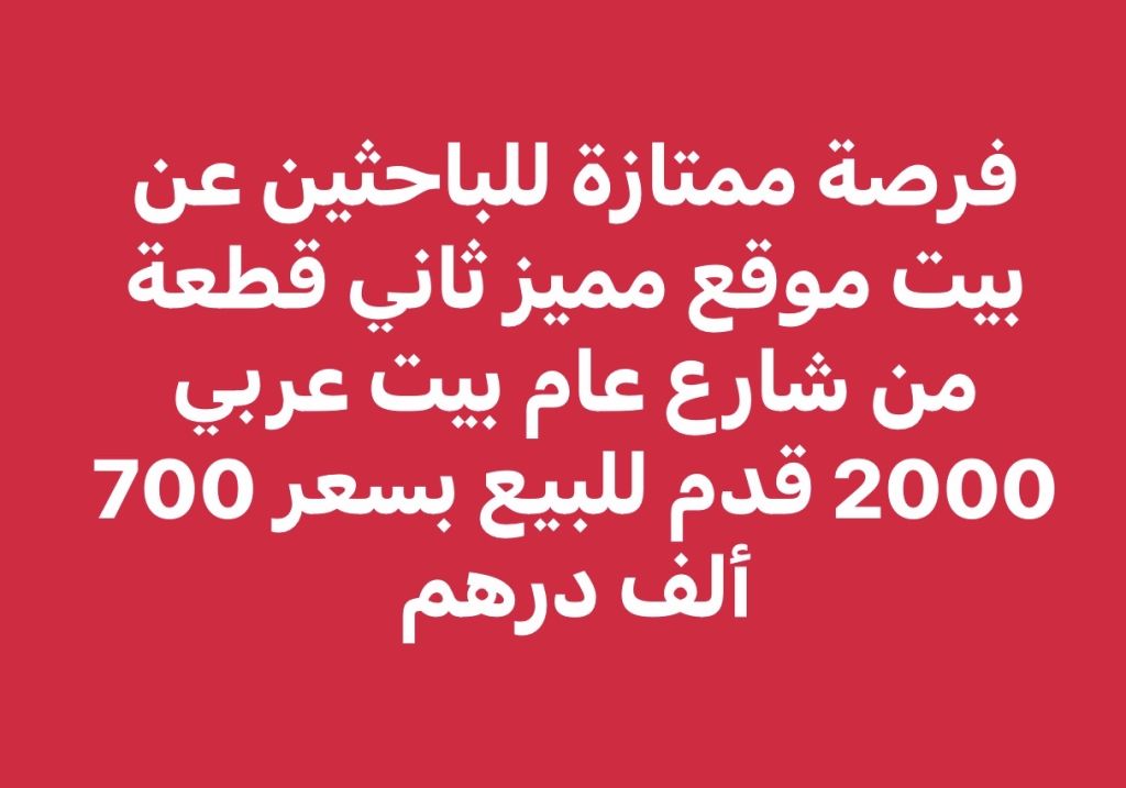فرصة ممتازة للباحثين عن بيت موقع مميز ثاني قطعة من شارع عام بيت عربي 2000 قدم للبيع بسعر 700 ألف درهم