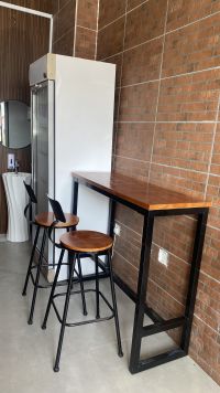 New Bar Set (Table + 2 Stools) Industrial Style Description Very clean and sturdy bar set for sale. Used for a very short time, 10/ 10 condition Design Solid wood top with black metal frame. Price AED420 - Pickup Ready for immediate collection. First come, first served