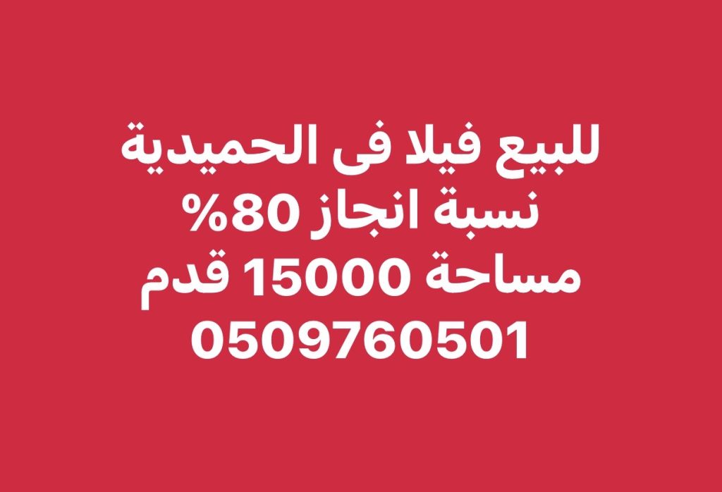 للبيع فيلا في الحميدية، مساحة 15000 قدم ونسبة انجاز 80 وبسعر 2 مليون و200 ألف درهم