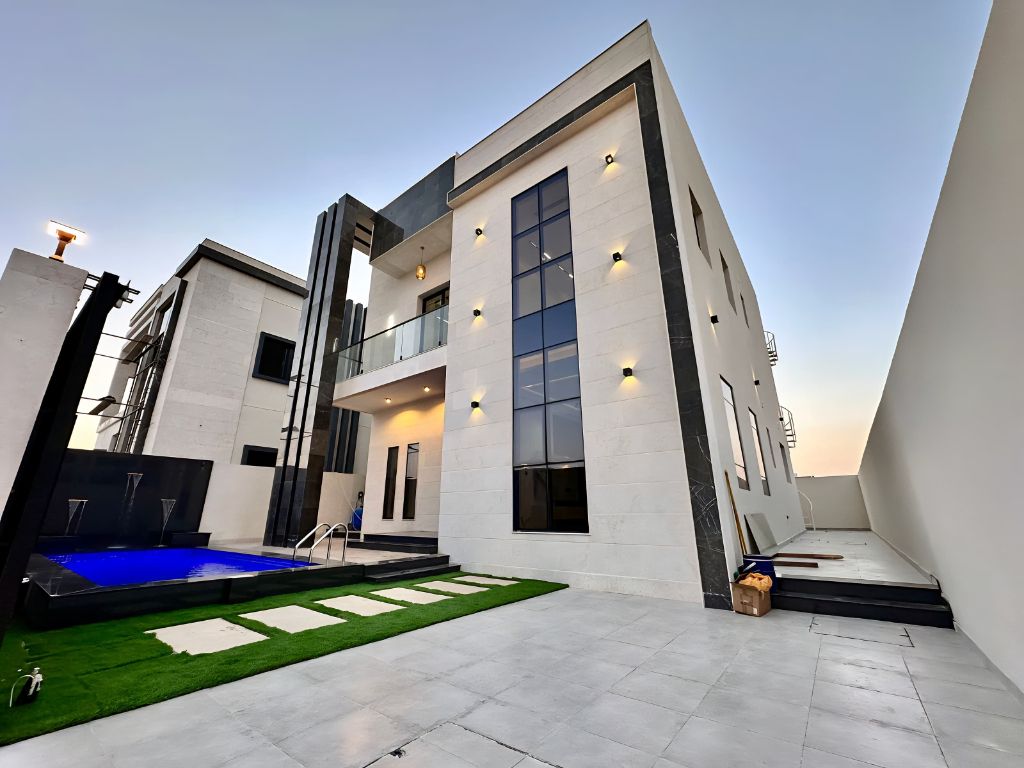 فيلا في الزاهية عجمان مكونة من 4 غرف وصالة ومجلس ومطبخ مجهز 6 حمام مع مسبح خاص تشطيب ممتاز مساحة الأرض 3014 قدم مربع ومساحة البناء 2700 قدم مربع مع حوش وارتداداماميكبير جاهزه للتسليم الفوري