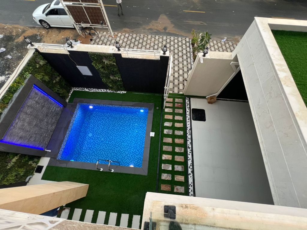 فيلا في عجمان VIP في المنطقة الحليوه 2 قريب شارع مدينة محمد بن زايد موقع مميز جدا تملك حر لجميع الجنسيات مساحة البناء 4000 قدم مساحة الأرض 3014 تتكون من 5 غرف ماستر صالة كبيرة مجلس كبير غرفة خادمة مع حمام مطبخ كبير خشبي حديث حديقة خارجي مميز ومودرن خزانات ملابس مطبخ تحضيري موقف داخلي حق سيارتين حوض سباحة شلال مضله وجلسة خارجي علي سطح مع حديقة تصميم داخلي وخارجي مودرن شامل رسوم تسجيل شامل كهرب أي والمياه
