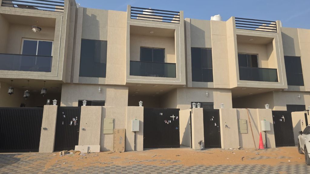 للإيجار - تاون هاوس في منطقة الحليو 2 3 غرف ماستر + مجلس + صالة + مطبخ + غرفة خادمة الفيلا جاهزة بالكهرباء والمياه والمكيفات أول ساكن السعر المطلوب 90000 درهم (قابل للتفاوض)