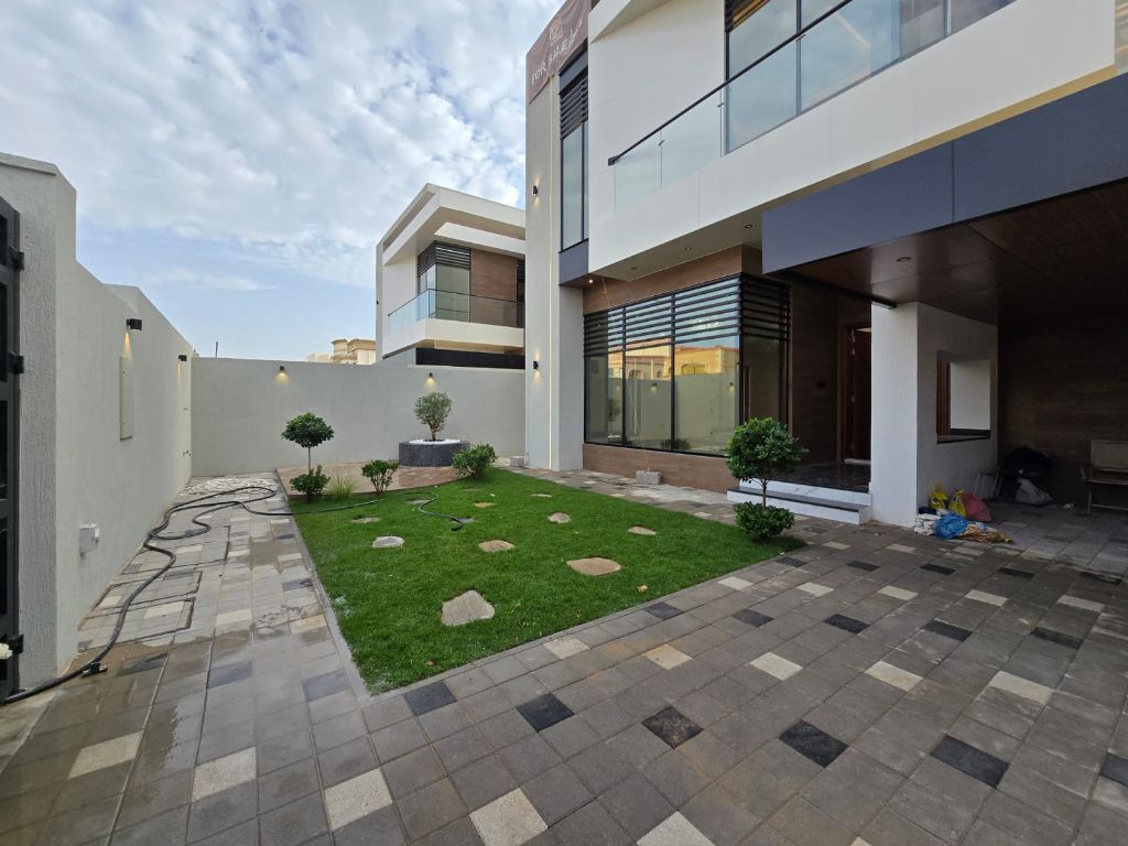فيلا مودرن جديدة للبيع في الروضة 3 عجمان أول ساكن تتميز بتصميم عصري وتشطيب عالي الجودة تضم 5 غرف نوم ماستر مع خزائن بالحائط وصالة كبيرة ومجلس واسع وغرفة خادمة ماستر مع تكييف مركزي وبالكونة واطلالة مفتوحة مع موقف داخلي وخارجي مساحة الأرض 5000 قدم والبناء 5300 قدم السعر 3500000 درهم شامل الرسوم