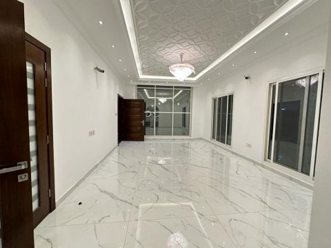 فيلا فاخرة للبيع في الباهية أول ساكن بمساحة 3014 قدم وبناء 3498 قدم مكونة من 5 غرف نوم ماستر مع غرف ملابس مجلس وصالة واسعة مطبخ رئيسي مجهز غرفة خادمة حوش وامتداد خارجي لست سيارات تكييف مركزي وتشطيبات عالية الجودة السعر 1750000 درهم