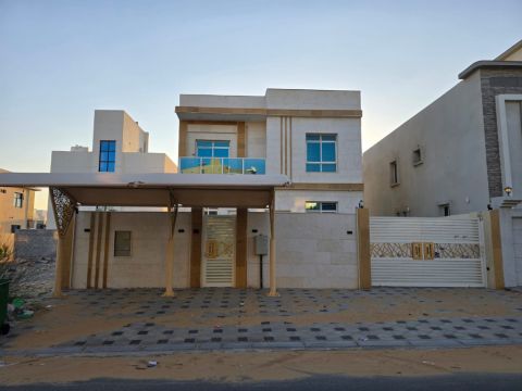 فيلا جديدة طابقين بتشطيب سوبر ديلوكس في الحليو 2 - عجمان مواصفات الفيلا مساحة البناء 3100 قدم مربع. مسبح خاص بتصميم فاخر - واجهة حجر طبيعي مع شبابيك زجاجية عصرية - حوش أمامي مع موقف داخي وخارجي تفاصيل الفيلا 5 غرف نوم ماستر بخزائن حائطية زجاجية منهم غرفة خادمة - مجلس كبير مع مغاسل وحمام - 2 صالة واسعة مع حمام ومغسلة. مطبخ رئيسي عصري متكامل
