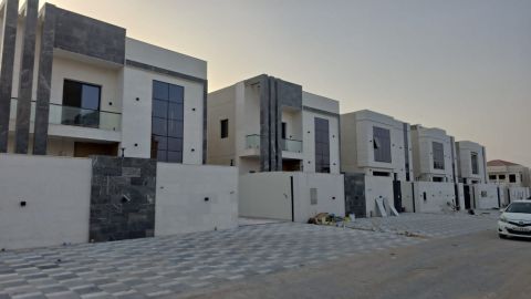 متوفر فيلا للبيع في عجمان منطقة المويهات العمر 3 سنوات مساحة 4000 قدم مع مياه وكهرباء ومكيفات وموقف داخلي وخارجي قريبة من الشارع الرئيسي 5 غرف ماستر واسعات جدا مع خزائن حائط وغرفة خادمة ومطبخين بالدور الأرض ومطبخ بالدور الثاني منطقة حيوي سهل المخرج لدبي والشارقة والسعر مميز للجاد