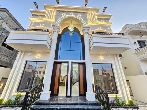 فيلا كلاسيك تشطيب راق في الحليو 2 - عجمان استمتع بحياة الرفاهية والتصميم المميز في قلب منطقة راقية تجمع بين الهدوء والفخامة. تفاصيل الفيلا مساحة الأرض 3400 قدم مساحة البناء 4300 قدم تتكون من أرضي + أول + رووف المكونات 6 غرف نوم ماستر بتشطيب VIP صالتان فسيحتان + مجلس راق مطبخ عصري مجهز المميزات واجهة حجر أنيقة وتصميم كلاسيكي فاخر حديقة خارجية مرتبة مع برجولا وكراسي استجمام تكييف مركزي