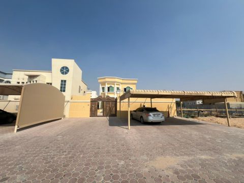 للبيع في عجمان منطقة الزاهية طابقين مع رووف جديدة أول ساكن مع الأثاث 5 غرف ماستر و2 صالة ومجلس ومطبخ وحوش مساحة الأرض 1722 قدم مساحة البناء 3000 قدم
