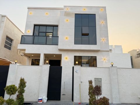 Luxury villa for sale in Al Amrah area - Ajman Featuring an elegant design that combines luxury and modern comfort, with super deluxe finishes ready for immediate occupancy. Area Land Area 3014 SqFt Built - up Area 4300 SqFt Villa Details 6 Luxurious Master Bedrooms Spacious Majlis and Living Room with a Modern Design Separate Maid's Room 4 Kitchens (Main + Outdoor + Preparation on the First Floor