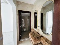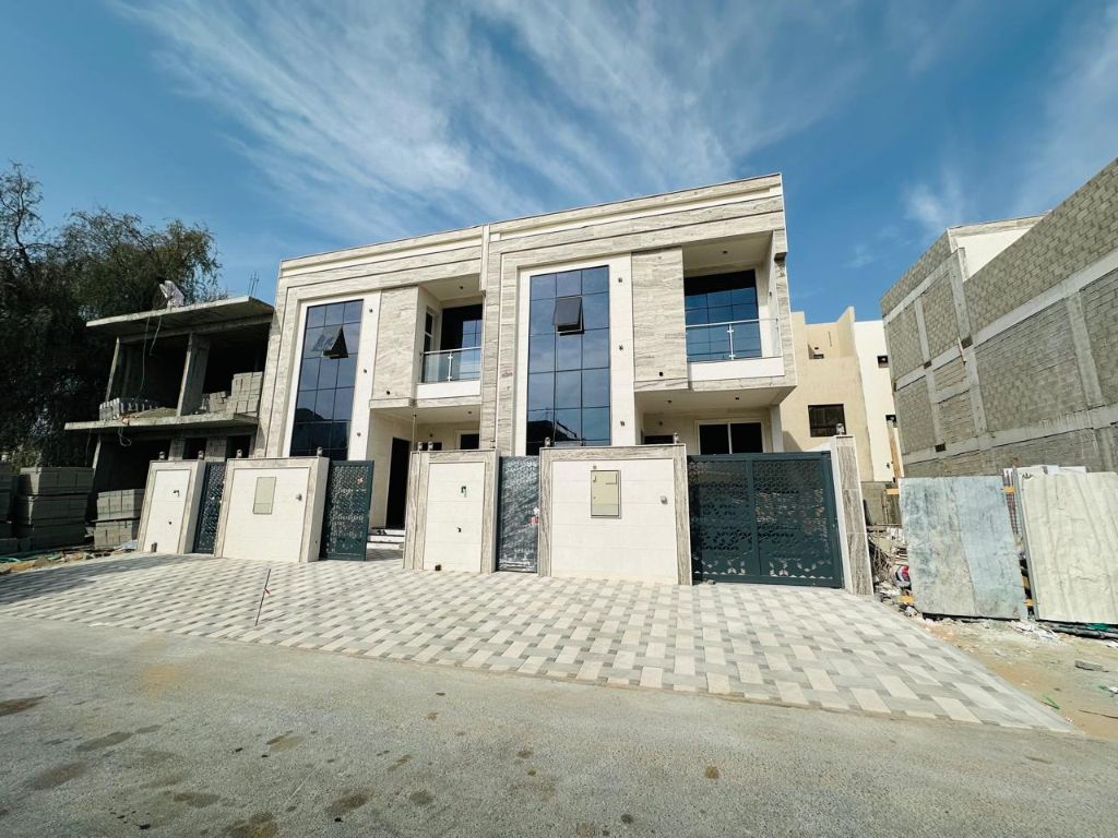 Super deluxe villa for sale in Ajman, Al Zahia area, on an asphalt road Luxurious finishing and prime location with parking Land area approximately 1723 square feet Villa contains 4 master bedrooms + preparatory kitchen Living room + guest lounge with bathroom and sinks Kitchen with storage, maid's room with bathroom Car garage